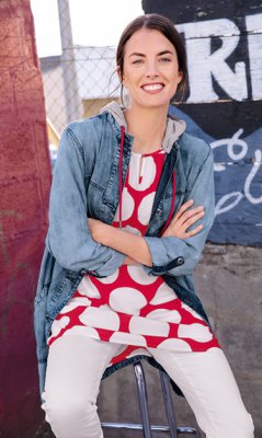 Ob sportlich oder elegant: Individuelle Mode für die aktive und gepflegte Frau steht bei uns im Mittelpunkt. In den Kollektionen wird der Schwerpunkt auf Kombinationsfähigkeit und Individualität gelegt.
